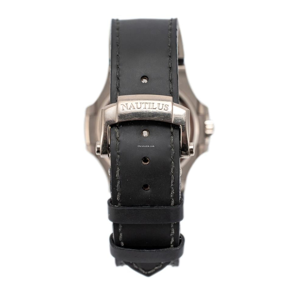 Gender: Men Metal: 18K White Gold Diameter: 40mm Weight: 143.74 grams One men's 18K white gold, Patek Phillipe Swiss made watch with original box and papers. The metal was tested and determined to be 18K white gold. Engraved with "750". In excellent condition. Comes with an additional VS Baguettes Diamond 18K White Gold Bezel and two VS Baguettes Diamond Links (custom) Pre-owned. Might show minor signs of wear. Nautilus 5712G White Gold Watch Properties Brand: Patek Philippe Family: Nautilus Model: Nautilus 5712G White Gold Ref. No.: 5712G-001 Production Year: 2014 Gender: Men's Water Resistance: 60 meters Caliber Properties Caliber No.: 240 PS IRM C LU Number of Jewels: 29 Diameter: 31.00 mm Frequency: 21,600 bph Power Reserve: 48.0 hours Movement Type: Automatic Display: Analog Date: Date Band Properties Band Type: Strap Band Material: Leather Clasp: Deployment Clasp Color: Black Case Properties Material(s): White Gold Glass Type: Sapphire Crystal Case Back: Open Case Shape: Cushion Diameter: 40.00 mm Height: 8.52 mm Dial Properties Color: Grey Hands: Hours, Minutes & Seconds Hand Style(s): Stick The watch's band consists of a black leather strap and is equipped with a deployment clasp. SKU: 190163 |